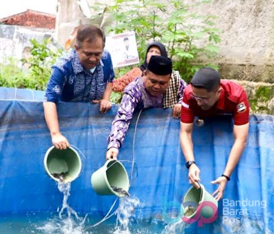 NGAMPRAH, BBPOS,- Pemerintah Kabupaten (Pemkab) Bandung Barat memberikan bantuan 1000 bibit ikan lele serta kolam terpal ke Pondok Pesantren (Ponpes) yang ada di KBB.