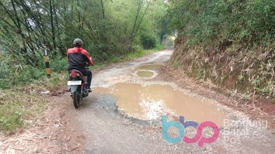 CIPATAT,BBPOS- Warga di empat desa wilayah Kecamatan Cipatat, Kabupaten Bandung Barat (KBB), yakni Desa Citatah, Cirawamekar, Nyalindung, dan Sumurbandung, mengeluhkan kondisi jalan kabupaten yang rusak parah dan tak kunjung diperbaiki.
